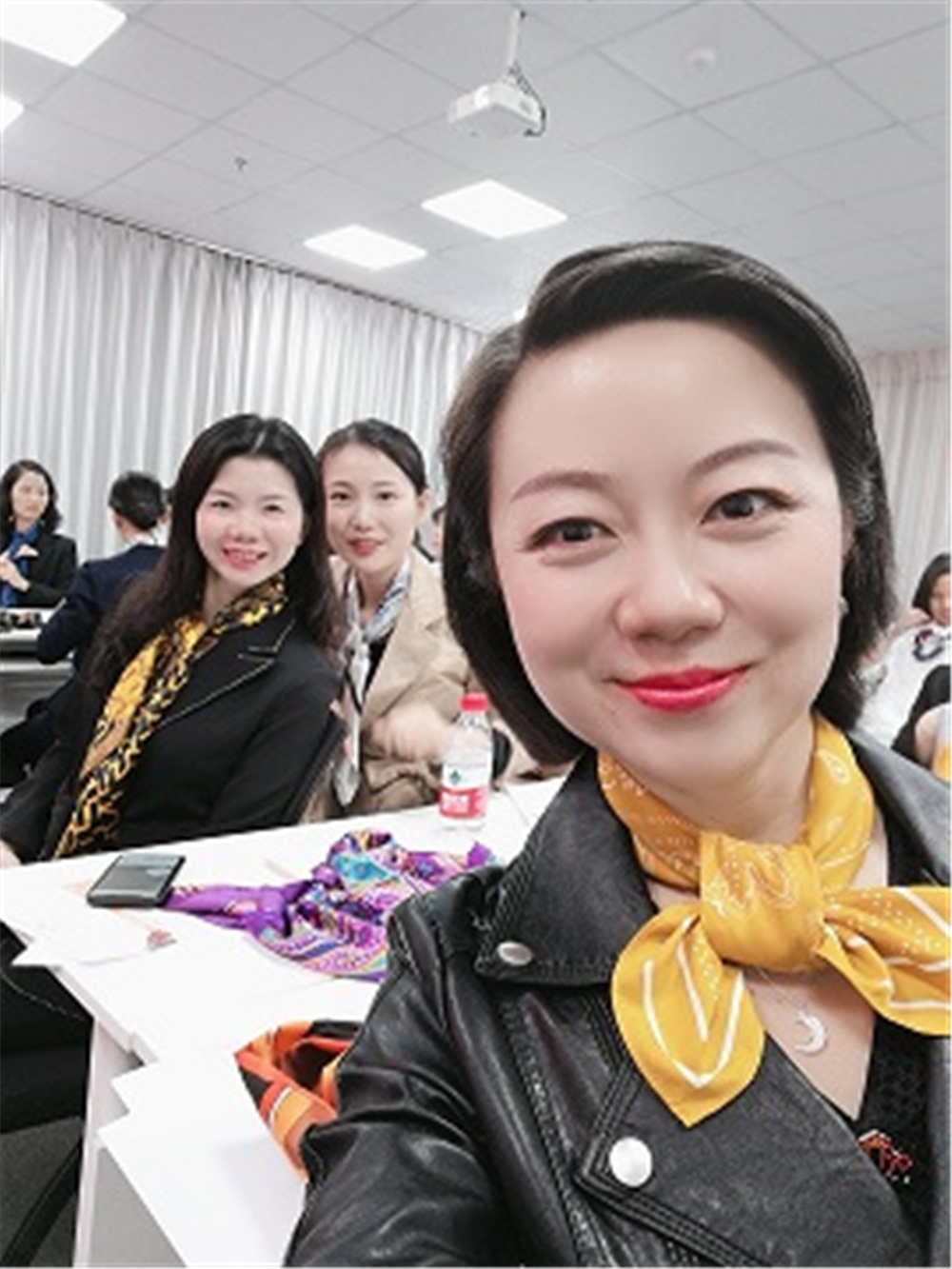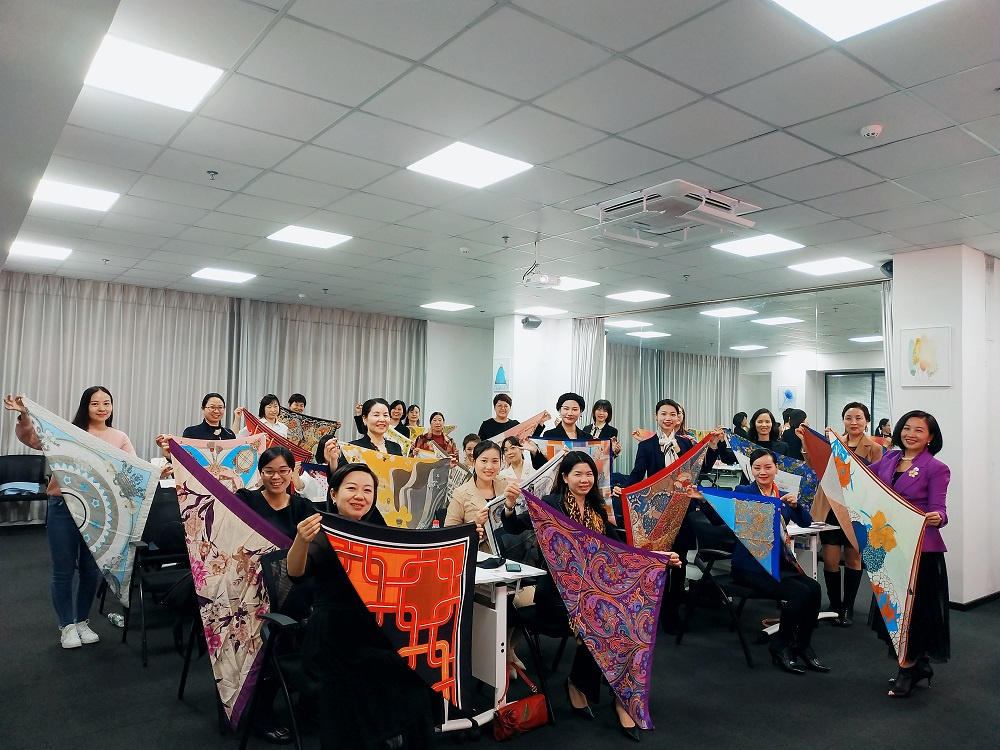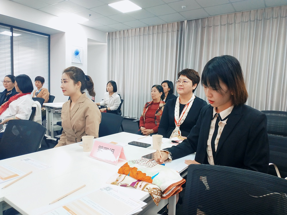 此次會員公開課,不僅使會員朋友們對絲巾搭配有更深的認(rèn)識,同時也增強了其動手能力和自信心,運用絲巾來“潤色全身,頸上添花”,得到了大家的普遍喜愛和贊揚。