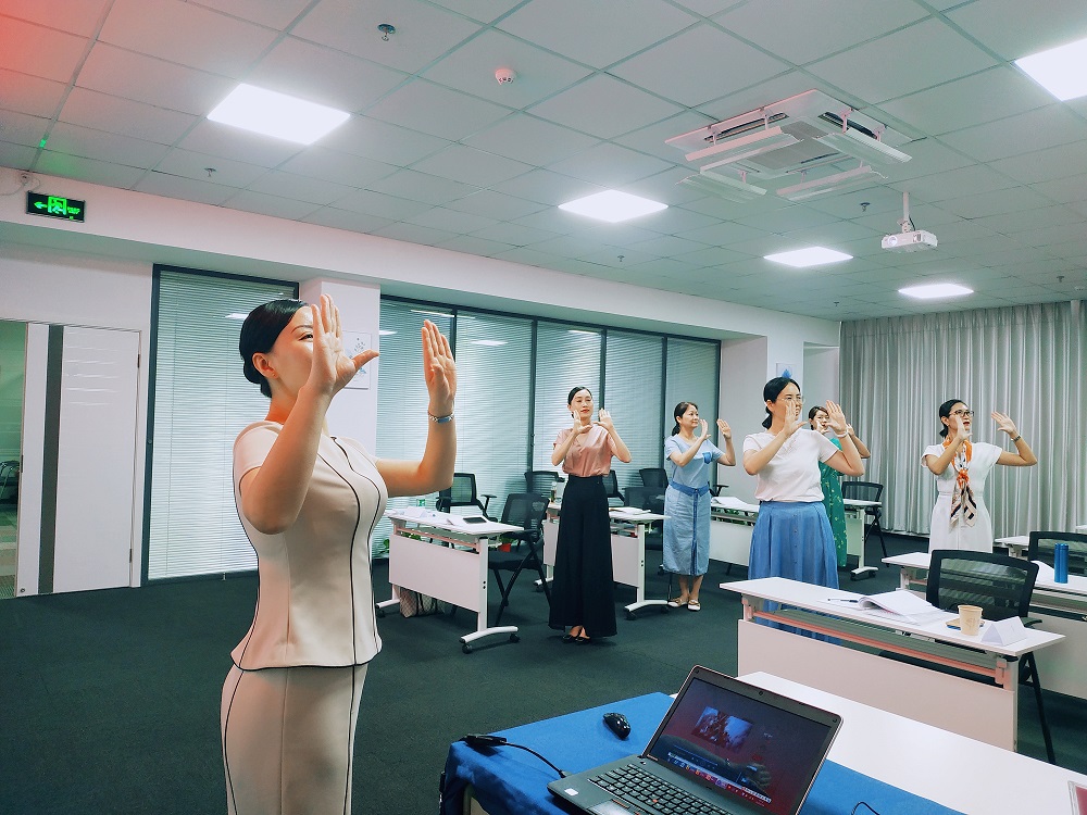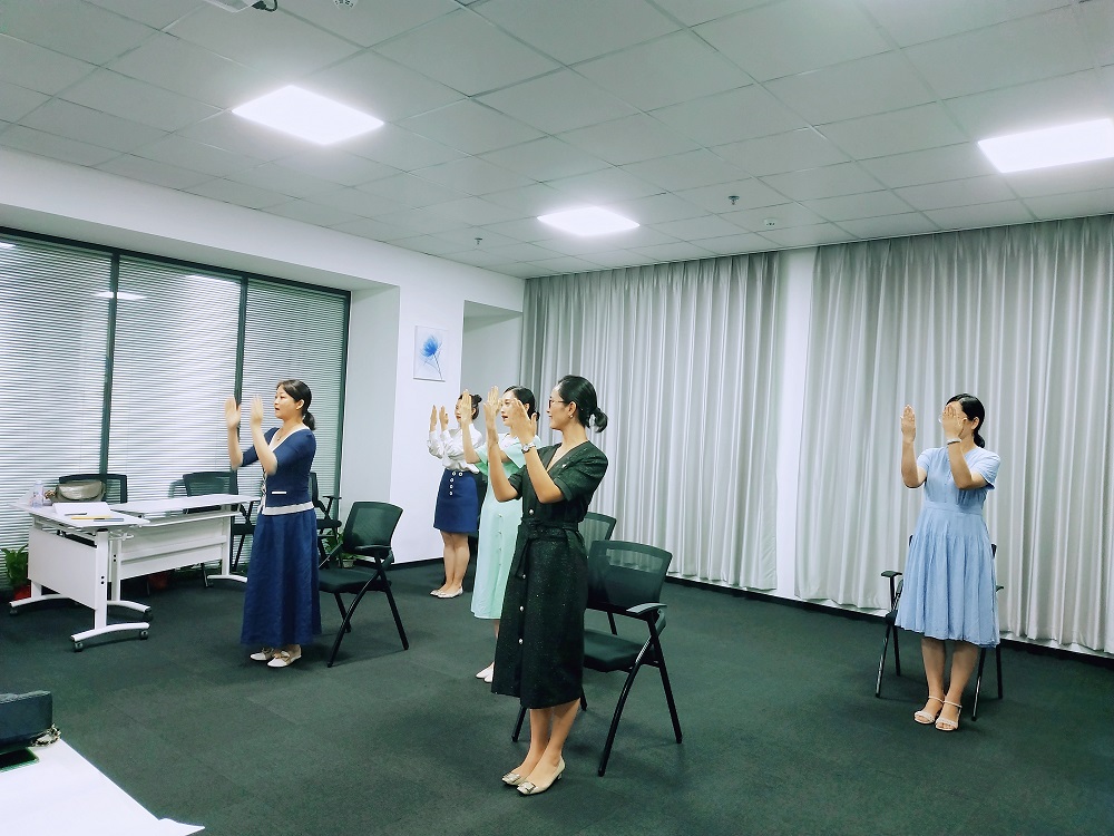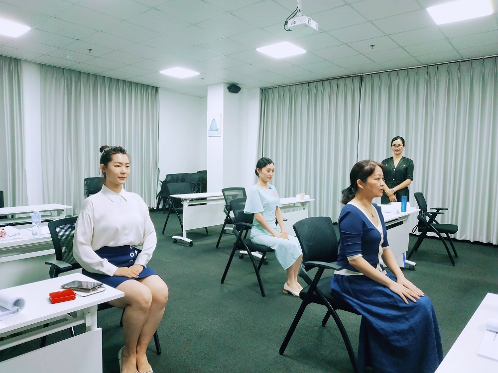 晚間學(xué)習(xí)時(shí)間段,由時(shí)淑妍老師講授《禮儀操編排教學(xué)》課程。在禮儀操編排教學(xué)課程開始前,時(shí)淑妍老師再次從禮儀行為規(guī)范:站姿、坐姿、走姿、蹲姿、指引、握手、遞接物品、等禮儀細(xì)節(jié)進(jìn)行系統(tǒng)的梳理和指導(dǎo)。作為一名禮儀培訓(xùn)師,首先要把自己禮儀行為規(guī)范標(biāo)準(zhǔn)化、細(xì)節(jié)化,并形成日常的生活習(xí)慣,才能在今后開展培訓(xùn)工作中,做到標(biāo)桿作用!