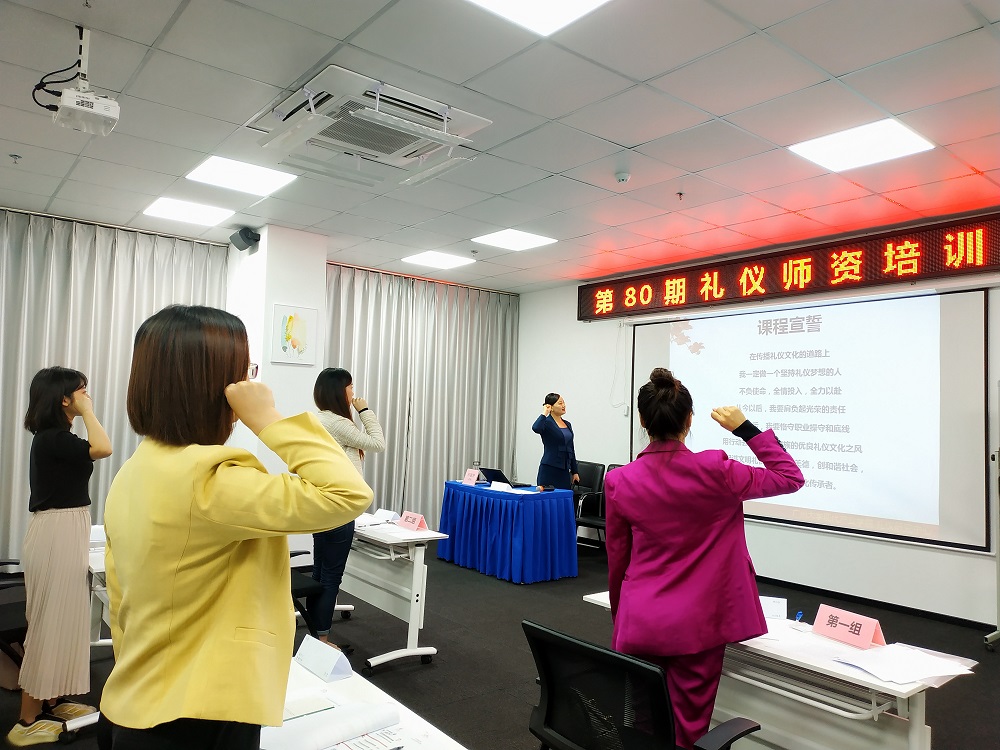 學(xué)員們進(jìn)行禮儀培訓(xùn)師宣誓儀式