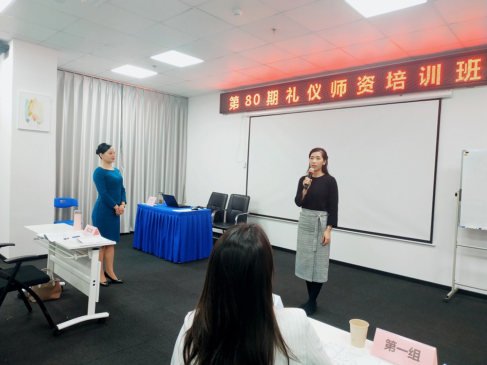 當(dāng)天下午課程,由時淑妍老師為師資班學(xué)員們進(jìn)行《實際、實用、實效的禮儀教學(xué)體系》和《禮儀培訓(xùn)師的實用培訓(xùn)技巧》課程講授。