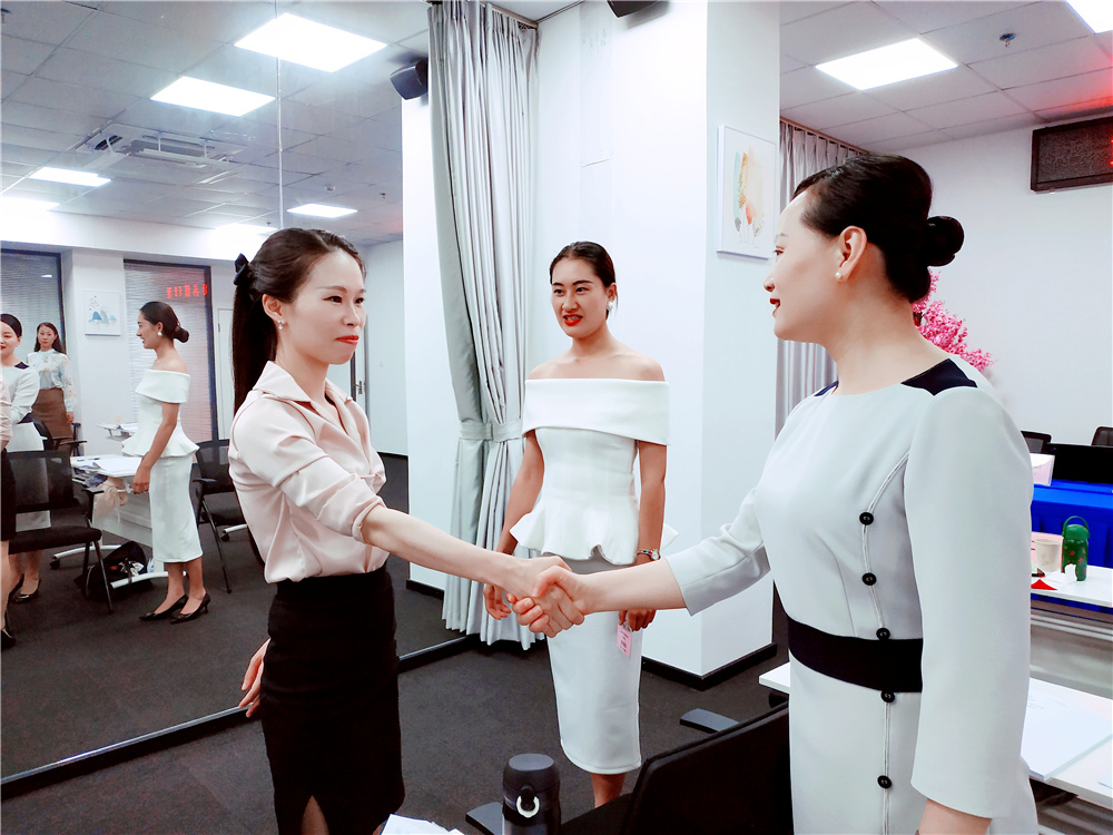 時淑妍老師為學員們講授了作為禮儀培訓師職業(yè)風采的禮儀細節(jié),并讓學員們逐一練習,通過指導力求讓每位學員都能盡快掌握禮儀培訓師的現(xiàn)場授課的風采及技巧。