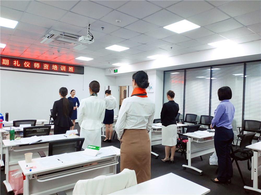 最后一天的課程學習,上午是《禮儀培訓師的風采展現(xiàn)》,下午則進行了本期全國禮儀師資培訓班的禮儀培訓師認證考試。