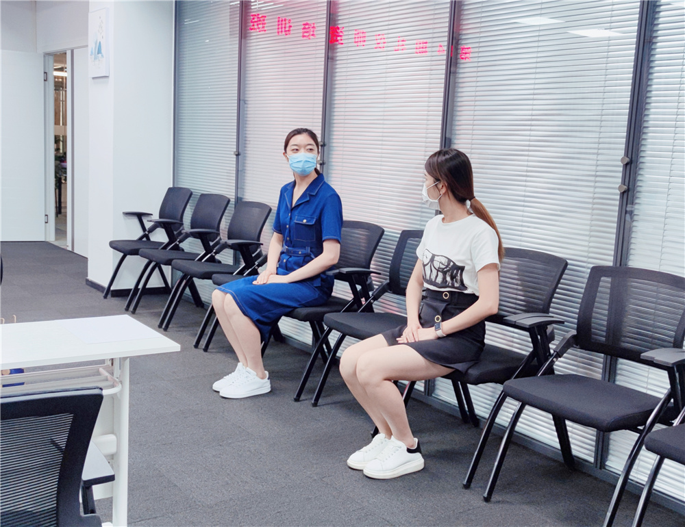 晚間學習時間段,由時淑妍老師講授《禮儀操編排教學》課程。在禮儀操編排教學課程開始前,時淑妍老師再次從禮儀行為規(guī)范:站姿、坐姿、走姿、蹲姿、指引、握手、遞接物品等禮儀細節(jié)進行系統(tǒng)的梳理和指導。