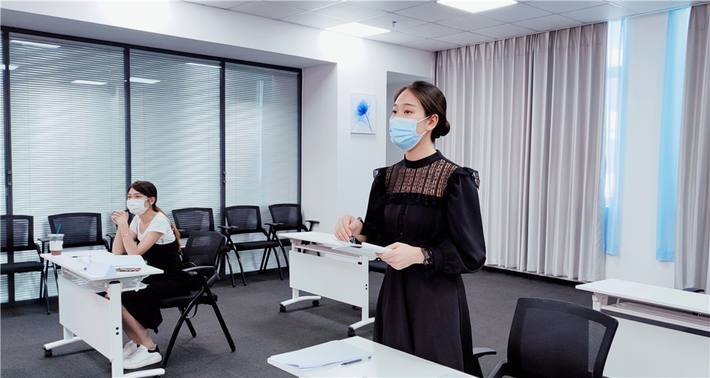 第二天上午,學員們早早來到課室開展早會,總結(jié)前一天自身的學習情況、并互相分享學習到的知識點和好的學習方法,同時共同制定當天學習行動計劃。
