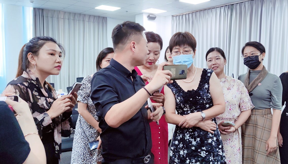 接著,呂老師用通俗易懂的語言帶領(lǐng)會員朋友們實(shí)操拍攝禮儀課堂花絮、課堂景別選取、運(yùn)鏡方式及后期制作要點(diǎn)。會員朋友們紛紛拿起手機(jī)跟隨老師實(shí)操,還提出很多關(guān)于拍攝的問題,現(xiàn)場氣氛十分熱烈。