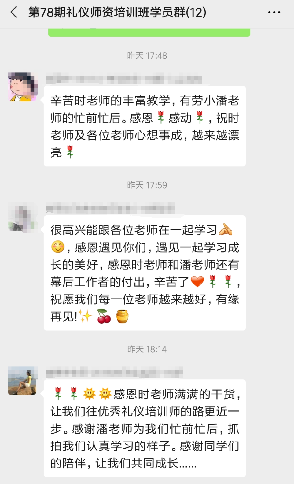 學(xué)員們暖心留言