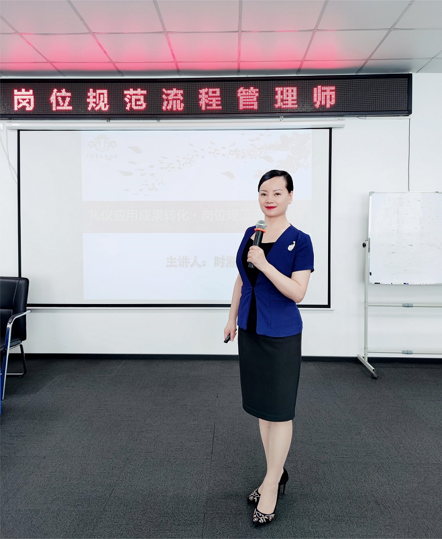 第一天課程,由廣州市禮儀協會會長、資深禮儀培訓師,高級禮儀培訓師,禮儀成果轉化體系研發(fā)者時淑妍老師,為學員們帶來了《崗位規(guī)范流程管理》課程。